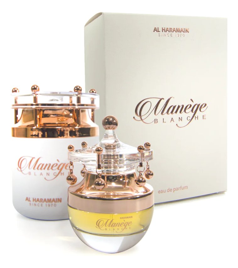 Al Haramain Manege Blanche es un perfume que te envuelve en una aura de misterio y encanto. Su aroma es una mezcla armoniosa de notas florales y amaderadas, creando una fragancia que es a la vez suave y poderosa. Cada rociada te transporta a un jardín en flor, lleno de posibilidades y promesas.