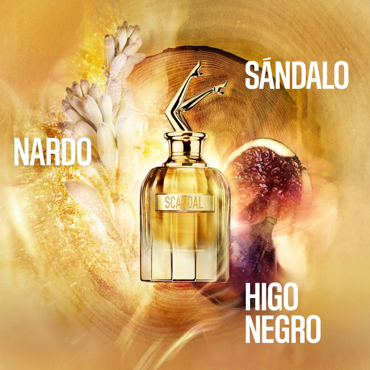 El opulento aroma de chipre ambarino que causa escándalo. Una fragancia concentrada de Daphné Bugey, Fabrice Pellegrin y Ane Ayo. Scandal Absolu no tiene límites cuando se trata de sorprender a los sentidos. De las excentricidades a las materias preciosas, la opulencia de este chipre ambarino intenso se atreve a mezclar el exquisito higo negro con la hechizante sensualidad de la tuberosa y la soberbia fragancia del sándalo. Es instantáneamente adictivo y escandalosamente delicioso.