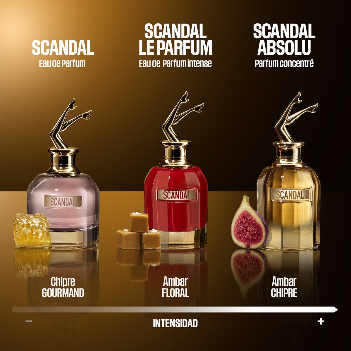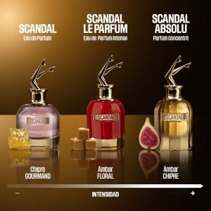 ¡Qué absoluto escándalo! Un nuevo Scandal Absolu incendia las noches parisinas de Jean Paul Gaultier. En la pista de baile, sus piernas desnudas rozan la indecencia. Su oro lacado brilla con una sensualidad desenfrenada. Su intenso chipre ambarino estremece los sentidos con adicción. Atrévete a mostrar tu excentricidad y disfruta hasta el final de la fiesta. ¡Una audacia irresistible!