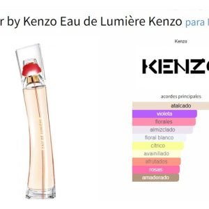 Características: Flower by Kenzo Eau de Lumière de Kenzo es una fragancia de la familia olfativa Floral para Mujeres. Esta fragancia es reciente. Flower by Kenzo Eau de Lumièrese lanzó en 2017. Flower by Kenzo Eau de Lumière fue creada por Alberto Morillas y Amandine Clerc-Marie. Las Notas de Salida son bergamota de Calabria y casis (grosellero negro); las Notas de Corazón son rosa de Bulgaria (rosa Damascena de Bulgaria), jazmín, durazno (melocotón) y ylangylang; las Notas de Fondo son almizcle blanco, heliotropo y violeta.