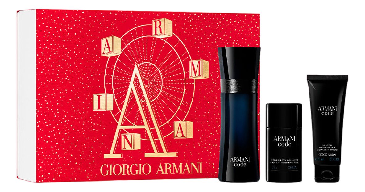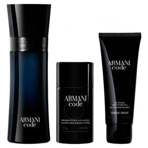 El set incluye: Code Pour Homme EDT 125ml + Desodorante 75ml + Shower Gel 75ml.