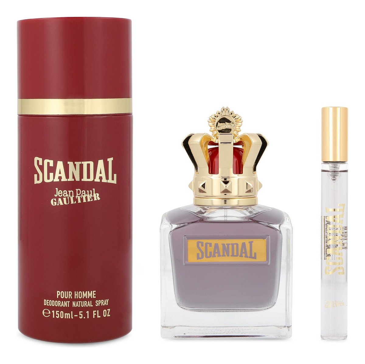 Scandal Pour Homme De Jean Paul Gaultier es una fragancia perteneciente a la familia olfativa Ámbar Amaderada, diseñada especialmente para hombres. Esta fragancia fue lanzada en el año 2021 y fue creada por los perfumistas Quentin Bisch, Christophe Raynaud y Natalie Gracia-Cetto. Las notas de salida de este perfume son esclarea y mandarina, que dan paso a las notas de corazón compuestas por caramelo y haba tonka. Finalmente, la nota de fondo es vetiver, que le aporta un toque final único y distintivo. Este set incluye tres piezas de Scandal Pour Homme de Jean Paul Gaultier.
