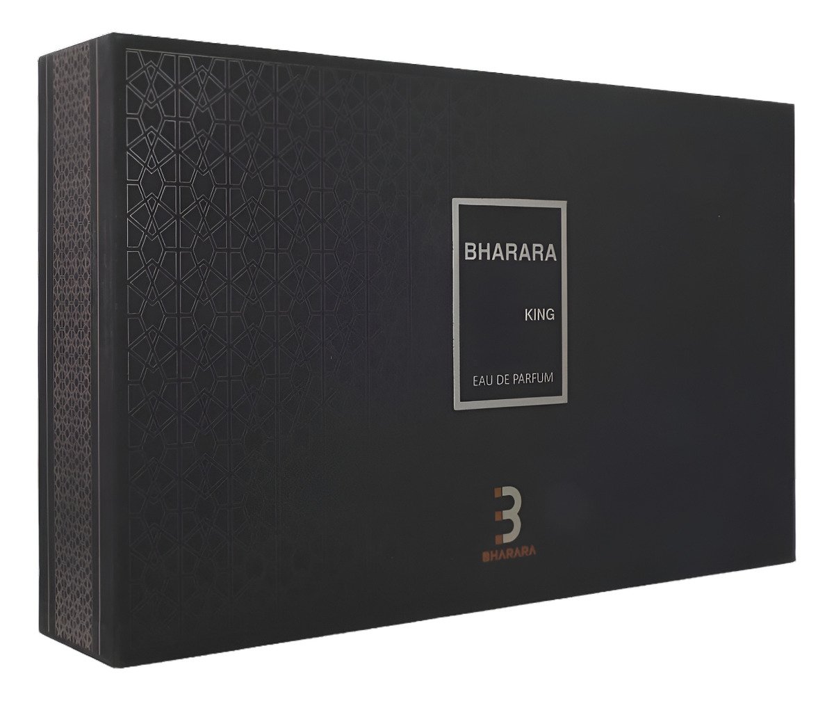 King de Bharara es una fragancia perteneciente a la familia olfativa para Hombres. Se caracteriza por sus Notas de Salida que incluyen naranja, bergamota y limón (lima ácida); su Nota de Corazón se compone de notas afrutadas; mientras que las Notas de Fondo son de vainilla, ámbar y almizcle blanco.